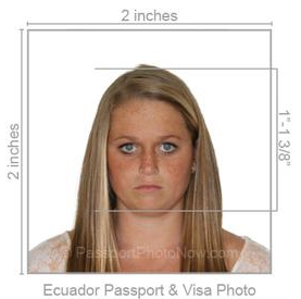 Ecuador passport, visa, citizenship & ID photos can be made from a picture you take with your camera by using our online service or with our mobile passport photo service. We will print them too the exact specification that your government will accept.